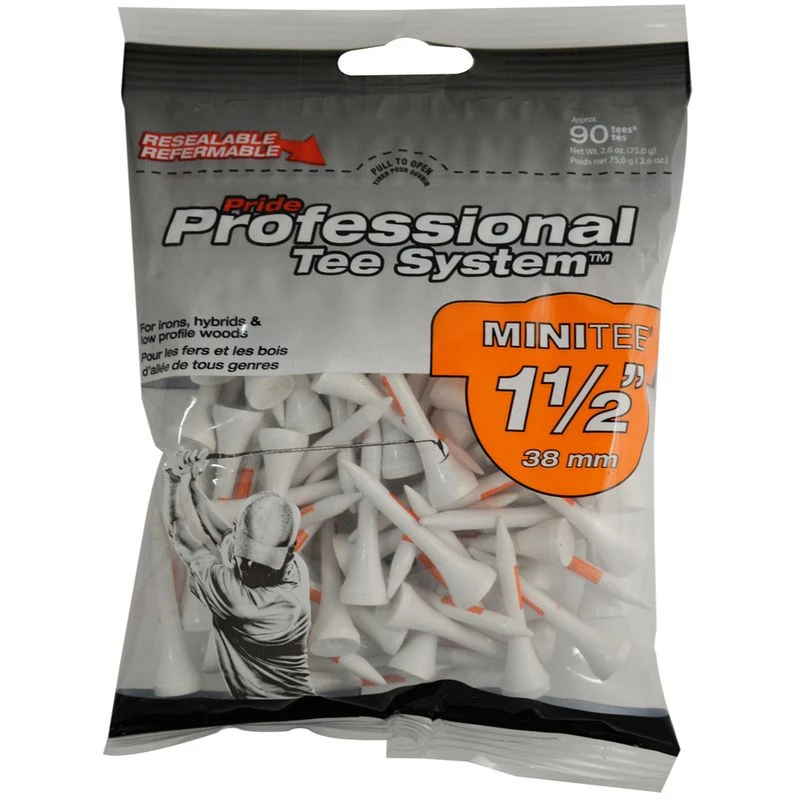 ideal for use with hybrids and low profile woods. Enjoy reduced friction which leads to enhanced distance and accuracy. Pride's Professional Tee System (PTS) is a proprietary system of color coded golf tees that allows for easy identification of length and appropriateness for various golf clubs.